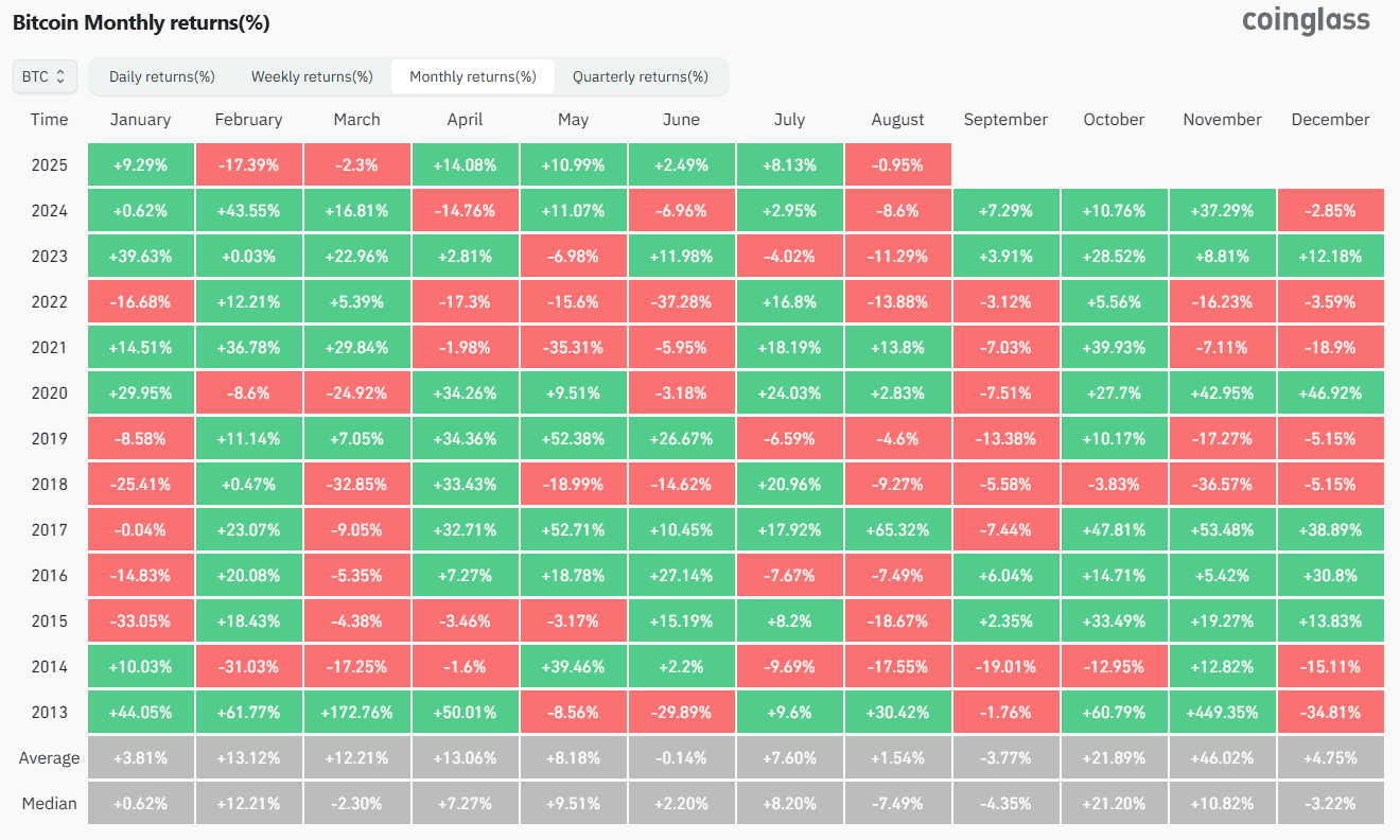 Bitcoin (BTC) a grimpé à un sommet de plus de 123 000 $ en juillet, mais se négocie actuellement bien en dessous de 120 000 $. Et tandis que certains ont commencé à douter du potentiel de l’actif pour obtenir de nouveaux gains à court terme, voici trois important Les facteurs qui suggèrent le mois en cours peuvent être très bénéfiques.
