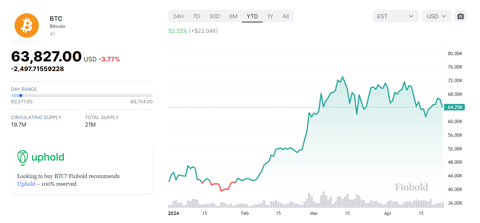 En effet, malgré les difficultés du mois d'avril, le BTC reste à 52,22 % dans le vert depuis le début de l'année (YTD).