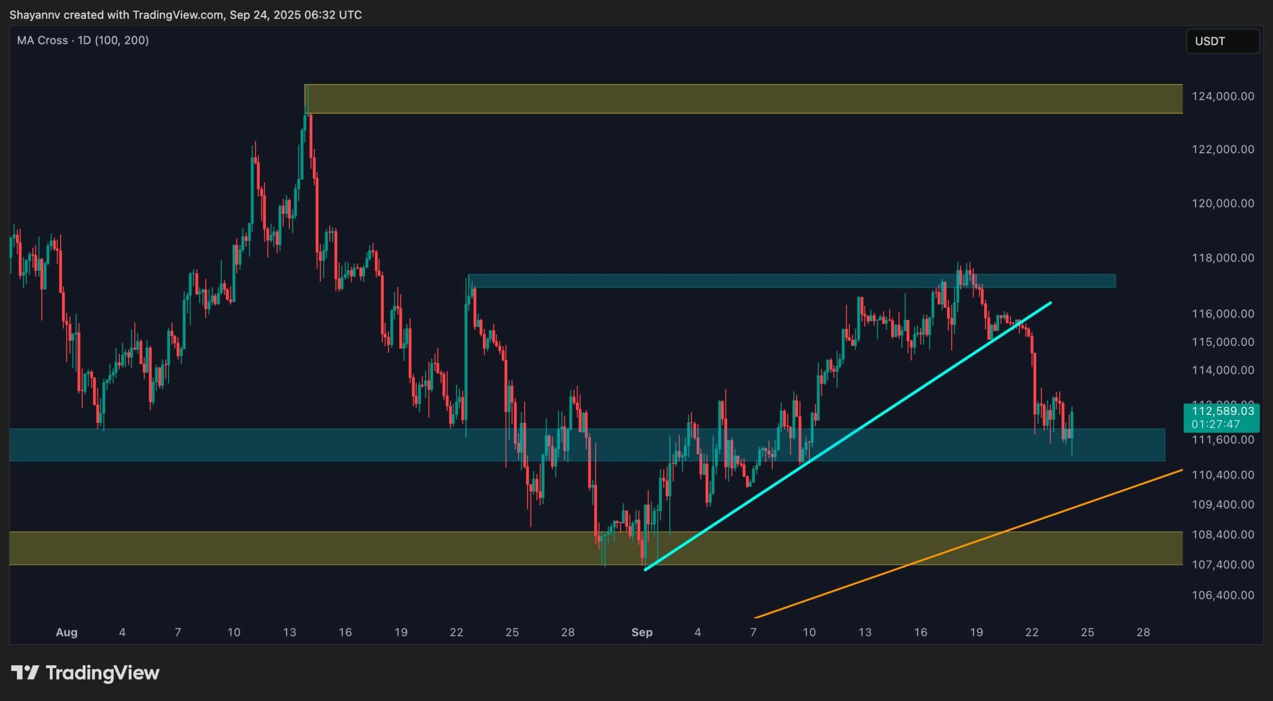Si les acheteurs défendent avec succès cette zone, le bitcoin pourrait monter un retracement vers la ligne de tendance ascendante cassée ou même retester la résistance de 115 000 $. À l’inverse, le fait de ne pas détenir 111 000 $ confirmerait de manière décisive une faiblesse supplémentaire, ouvrant la porte à une glissière vers le bloc de demande de 108 000 $ à 107 000 $, où une liquidité importante s’aligne sur le soutien à long terme.