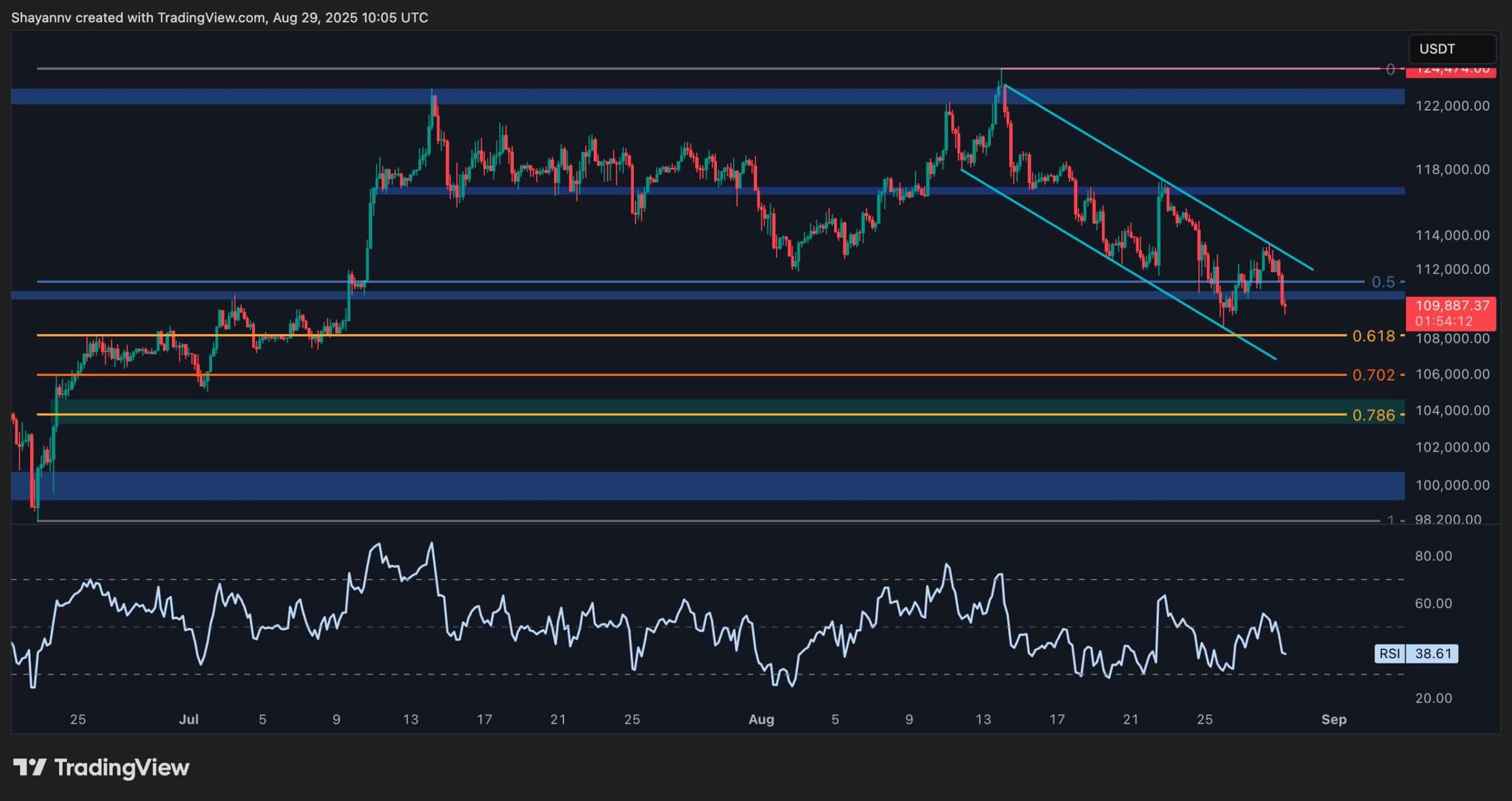 Sur le graphique quotidien, l’actif a chuté progressivement depuis qu’il a atteint le sommet de 124 000 $, avec un août, la fermeture potentielle de Bearish. Il s’agit d’un panneau inquiétant pour les investisseurs, car le prix est désormais en dessous du niveau clé de 110 000 $, ce qui pourrait faire glisser le prix vers la région de 104 000 $ et potentiellement même en dessous de 100 000 $.