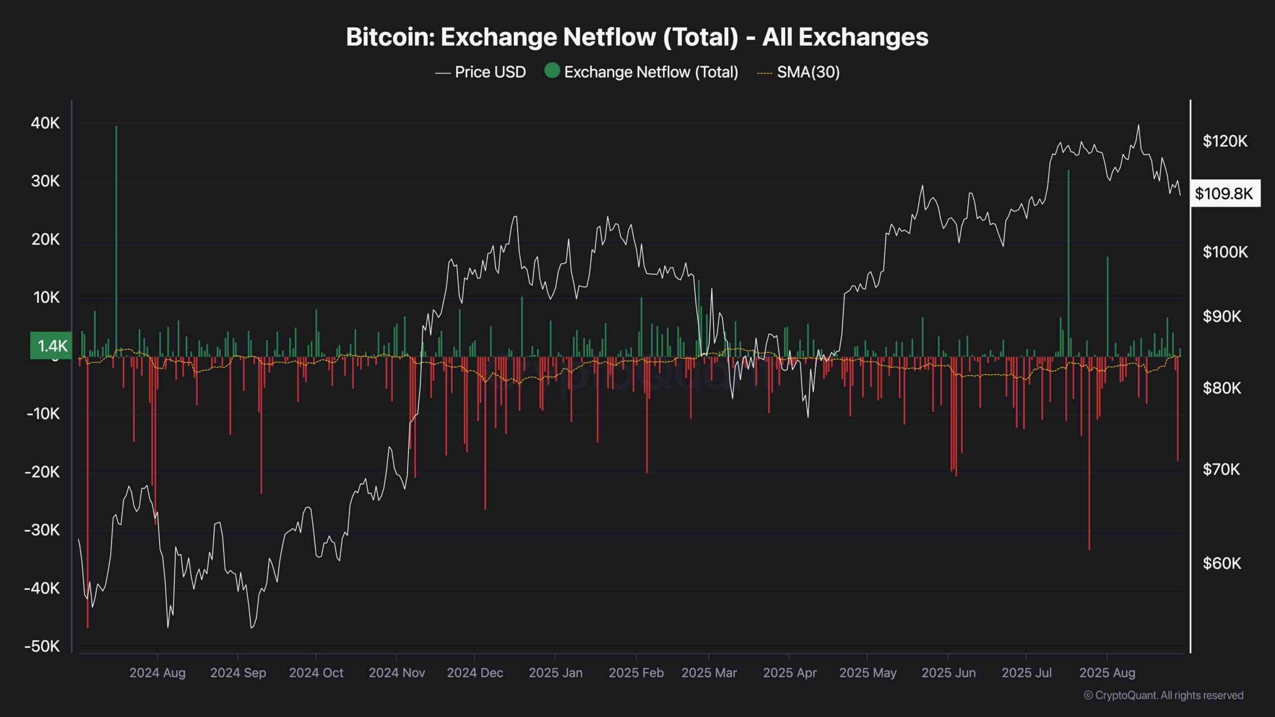Dans le même temps, bien qu’il y ait eu des jours isolés de grandes entrées dans les échanges, ils ont été contrés par des sorties tout aussi fortes. Cet équilibre renforce l’idée que les pics à court terme dans la pression de vente n’ont pas été suffisants pour inverser la tendance à l’accumulation plus large.