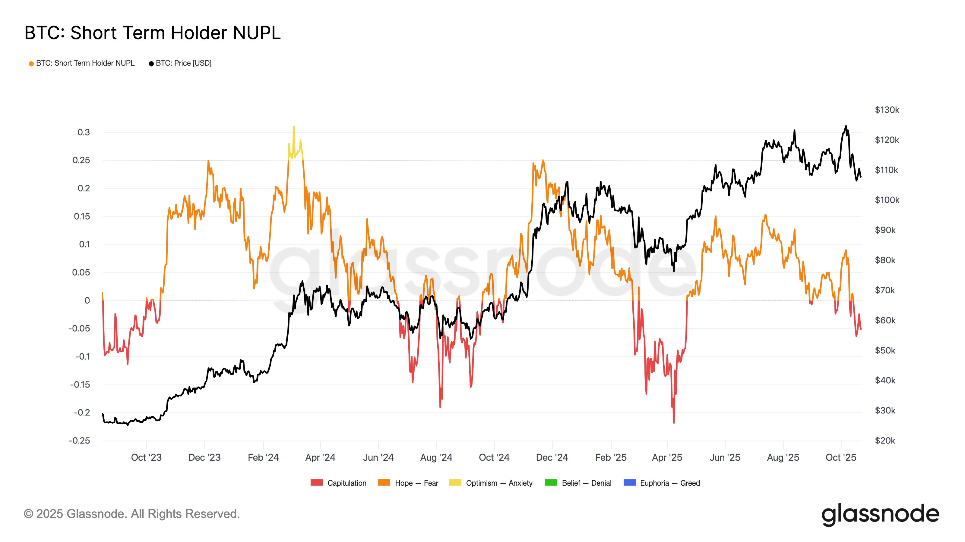 Dans un article X, la société d’analyse a partagé un graphique qui met en perspective la perte nette non réalisée détenue actuellement par les Bitcoin STH.