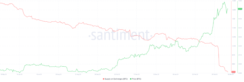 Offre de Bitcoin sur les bourses. Source : Santiment