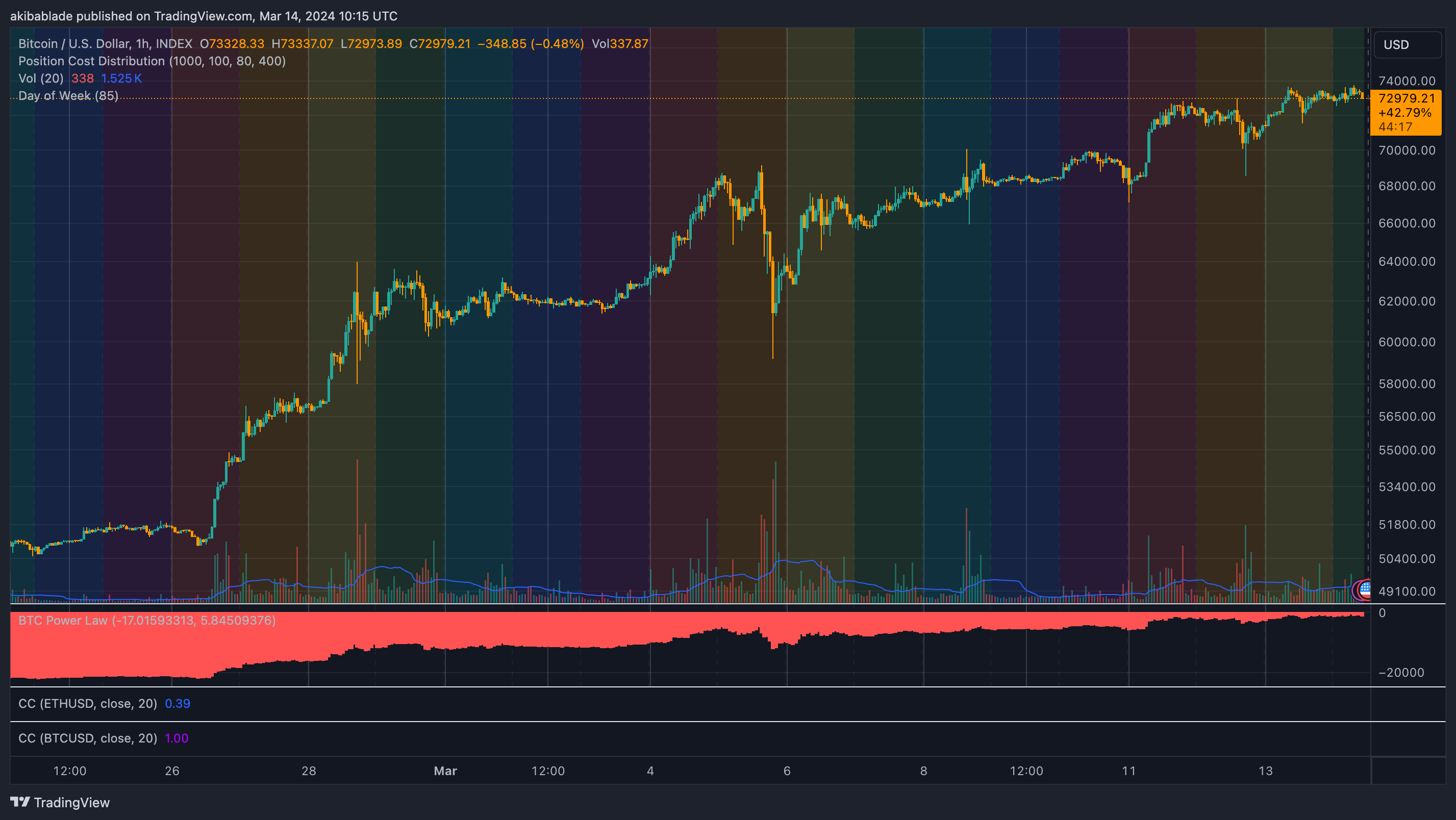 Au cours des trois dernières semaines, les lundis ont connu des augmentations de prix de 10 %, 9 % et 6,5 % respectivement. Cependant, les mardis suivants ont connu des mouvements de prix importants dans les deux sens – un gain de 5 % suivi d’une perte de 7 % le 5 mars (une variation intrajournalière de 14 %) et une variation plus modeste de 6 % le mardi 12 mars dernier. a été volatil, avec une variation de 9 % le 29 février. La plupart des jeudis et vendredis ont vu une variation de prix intrajournalière d’environ 2 %.