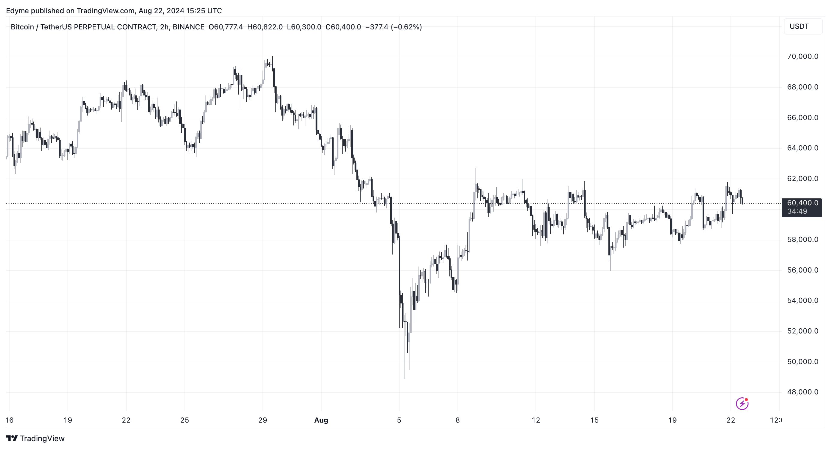 Pendant ce temps, Bitcoin forme un modèle de coin élargi, généralement considéré comme un signal de continuation haussière. Si l’USDT.D continue de baisser, Mags anticipe que Bitcoin pourrait connaître une « hausse » notable, poussant potentiellement le prix à 72 000 $ ou plus.