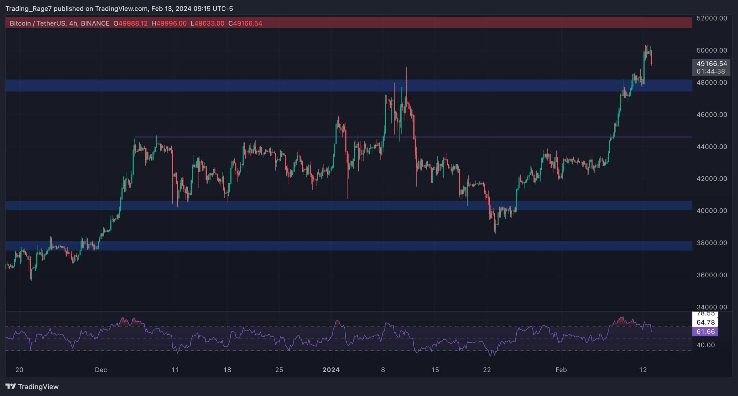 Sur le graphique journalier, le prix a dépassé le niveau de résistance clé de 48 000 $ après un précédent rejet. Bitcoin vise actuellement le niveau de résistance de 52 000 $ à court terme.