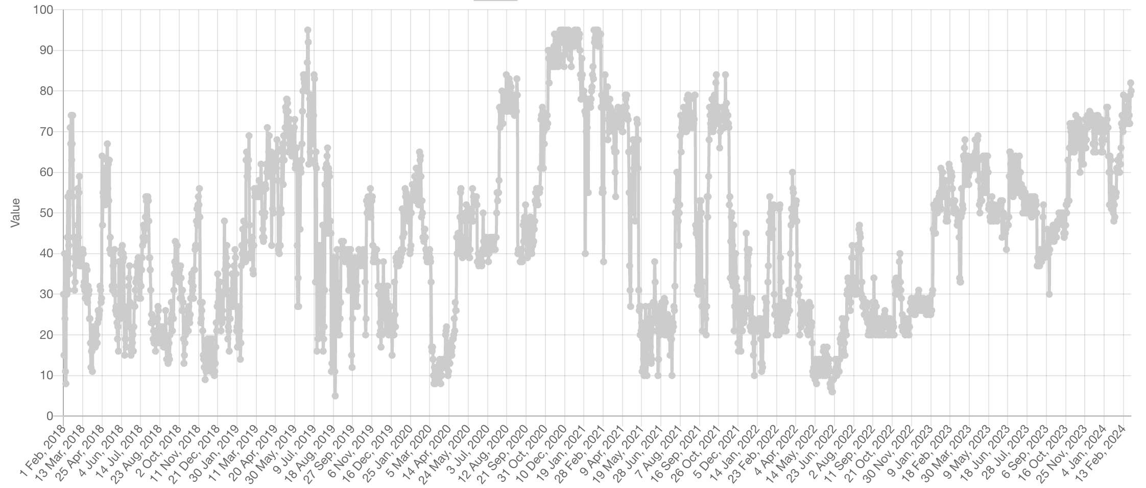 Faisant un parallèle avec la réaction de Markus, les analystes soulignent l’indice de peur et de cupidité – une mesure souvent utilisée pour évaluer le sentiment du marché – qui se situe actuellement à un niveau stupéfiant de 80, ce qui indique une atmosphère omniprésente d’extrême cupidité. Ce niveau d’exubérance n’a pas été observé depuis novembre 2021, lors du précédent flirt du Bitcoin avec son sommet historique de 69 000 $.