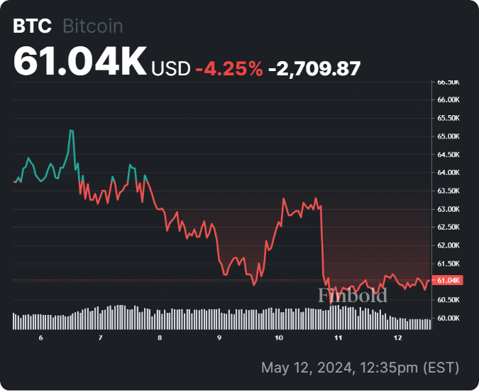 Au moment de mettre sous presse, Bitcoin s'échangeait à 61 040 $ avec des pertes quotidiennes de près de 0,3 %. Sur le graphique hebdomadaire, BTC est en baisse de 4 %.