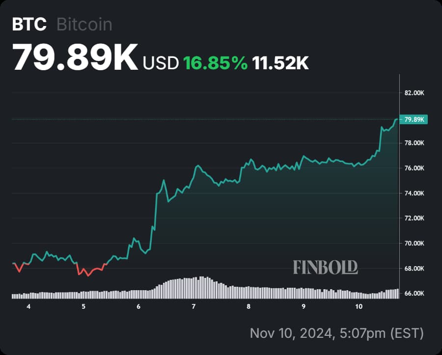 Se négociant actuellement au-dessus de 79 000 $, après avoir brièvement touché 80 000 $, la dynamique haussière du Bitcoin attire l’attention des traders et des analystes.