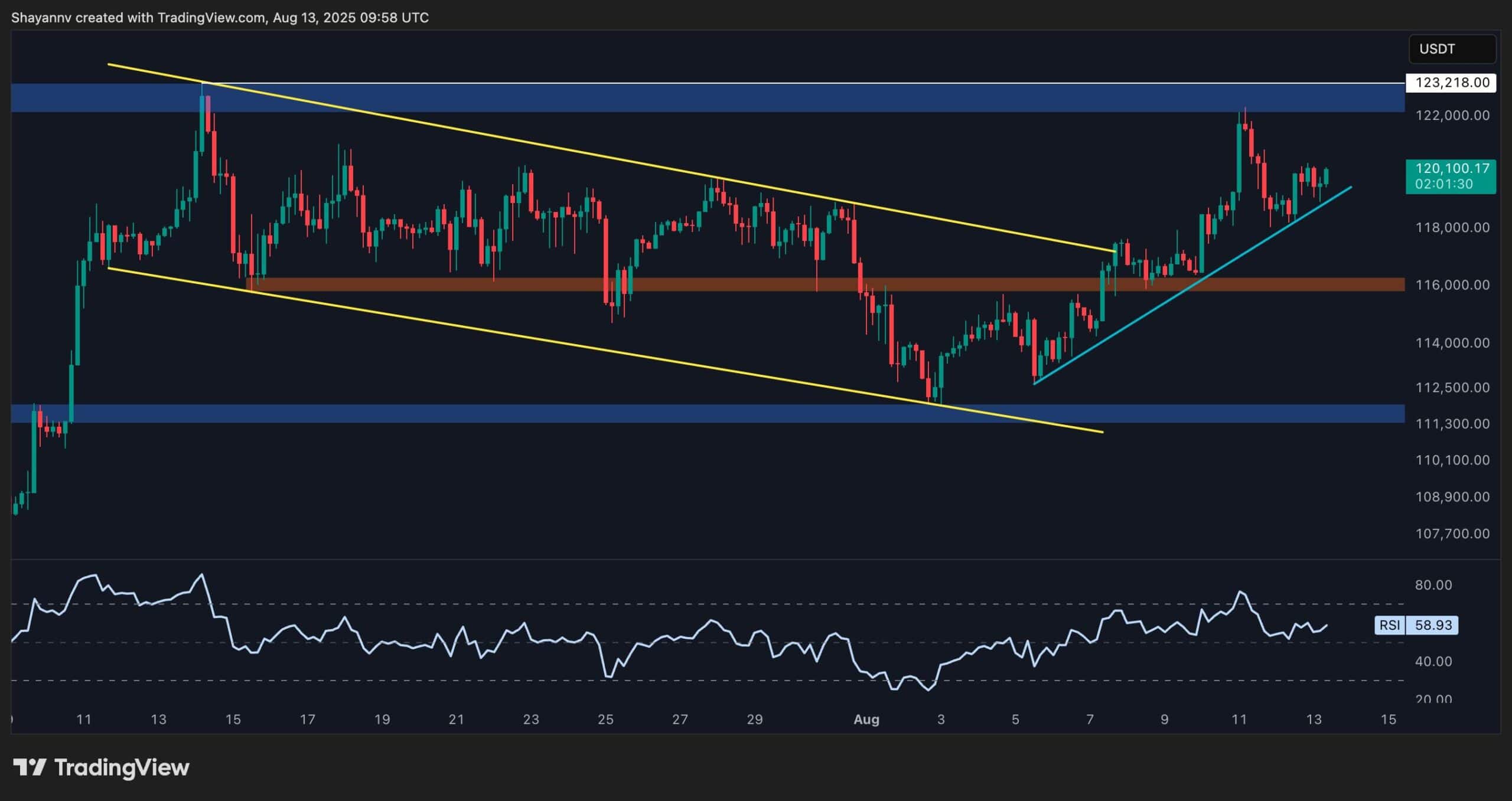 Le RSI reste au-dessus du niveau 50, renforçant l’élan haussier et augmentant la probabilité d’un retest et d’une rupture potentielle au-dessus du haut de 123 000 $. Pourtant, si un retrait se produit, la zone de soutien de 116 000 $ pourrait agir comme un domaine clé pour un rebond et une continuation de la tendance à la hausse.