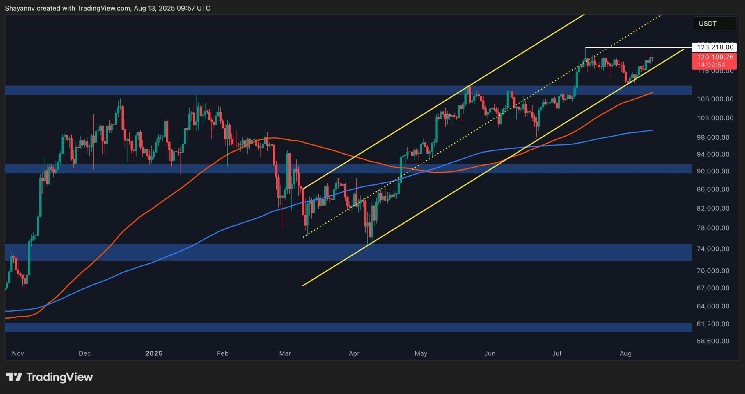Cependant, si ce support de canal échoue en raison d’un retrait soudain, le niveau de 110 000 $ à proximité, ainsi que la moyenne mobile à 100 jours située à proximité, pourrait servir de zone de soutien critique, potentiellement déclenchant un rebond et une continuation vers des sommets frais.