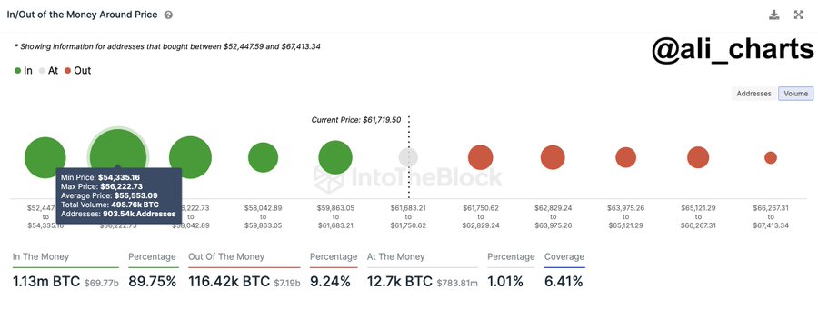 Dans le même temps, Ali Martinez, spécialiste renommé du marché de la cryptographie, a noté qu’il n’y a « littéralement aucune résistance devant Bitcoin » pour le moment avec un « mur de support majeur entre 54 300 $ et 56 200 $ où 903 540 adresses ont acheté près de 500 000 BTC », comme il l’a déclaré en février. 28.