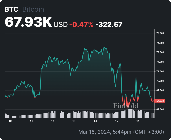 Au moment de mettre sous presse, Bitcoin s’échangeait à 67 930 $, ayant perdu sa valeur d’environ 0,35 % au cours des dernières 24 heures. Au cours des sept derniers jours, Bitcoin a chuté d’environ 0,47 %.