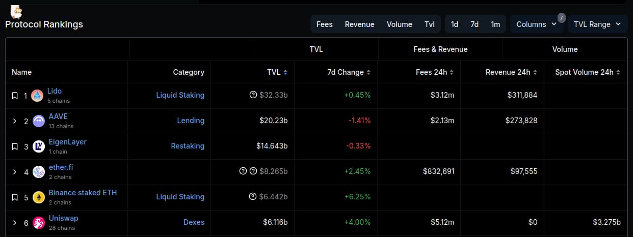Avec cela, le principal DEX de Solana dispose de 2,29 milliards de dollars en TVL, en hausse de 8,66 % au cours des sept derniers jours. Raydium a généré plus de 2,79 milliards de dollars en volume et 7,4 millions de dollars en frais au cours des dernières 24 heures.
