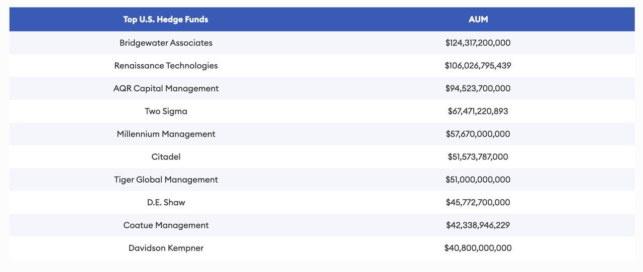 Two Sigma possède le quatrième actif sous gestion le plus élevé du pays, avec 67,471 milliards de dollars d’actifs sous gestion. Suivi par Millennium Management, avec 57,67 $, selon un rapport de décembre 2023.