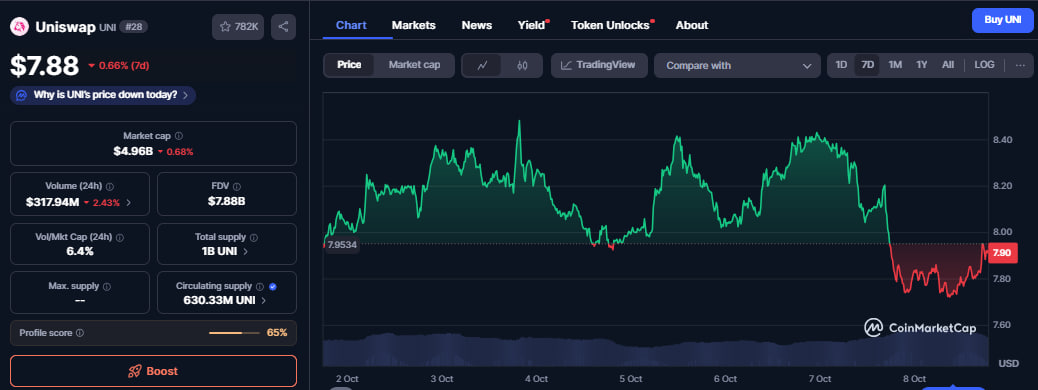 Le jeton d’Uniswap a connu des difficultés au cours des dernières séances, malgré une reprise plus large du marché.