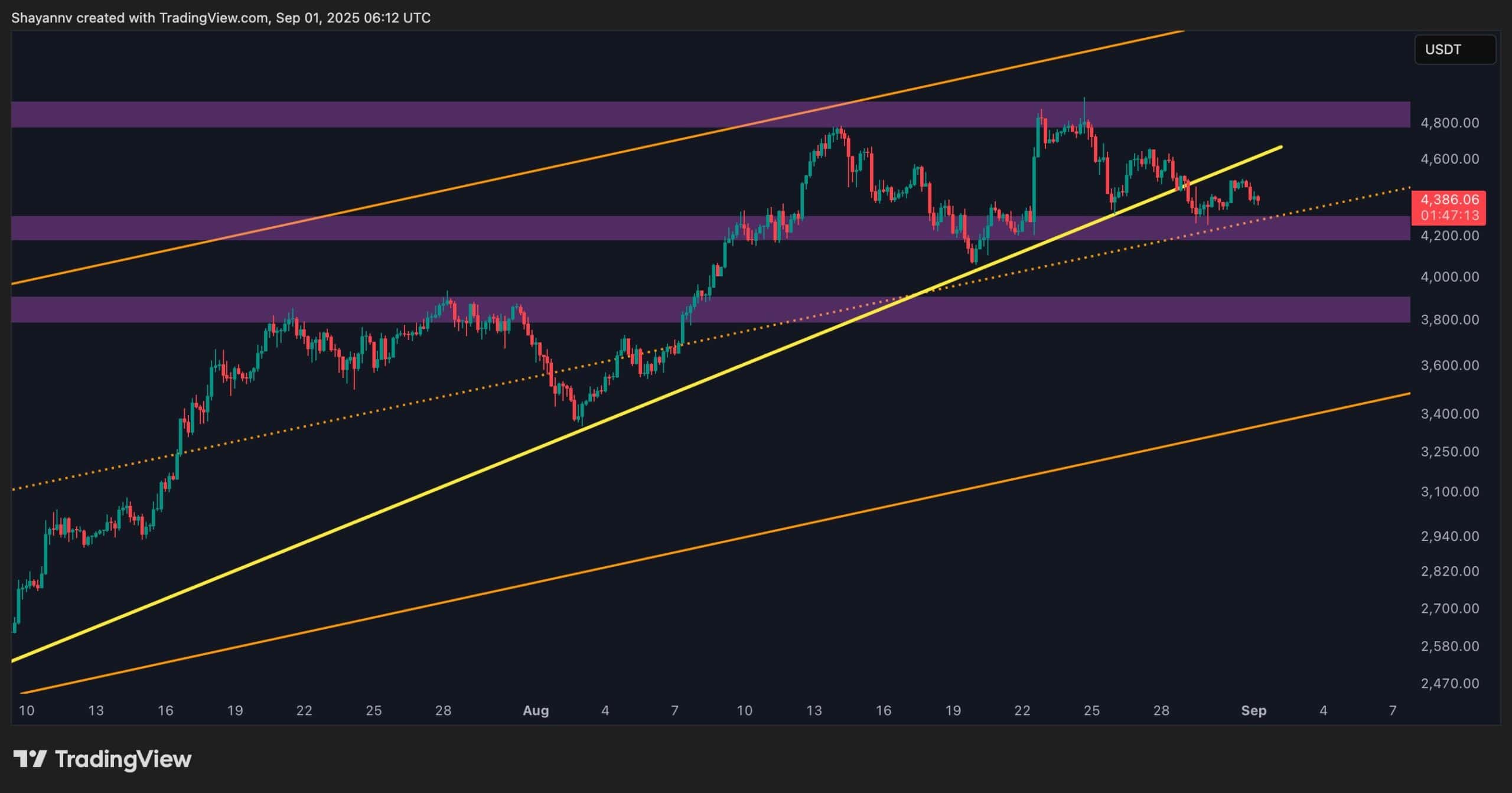 Le RSI s’est refroidi à environ 52, reflétant l’élan neutre après le rallye prolongé. Une ventilation décisive inférieure à 4,2 000 $ exposerait probablement Ethereum à la région de demande de 3,8 000 $, qui coïncide avec la moitié inférieure du canal. À la hausse, un rebond des niveaux actuels pourrait générer le prix vers 4,6 000 $, et la récupération de ce niveau rétablirait l’élan haussier, ouvrant potentiellement le chemin vers un nouveau sommet de tous les temps.