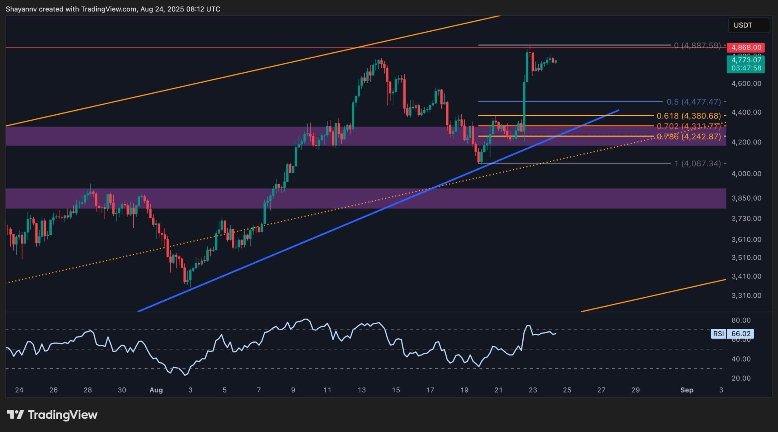 Alors que l’ETH reste dans une forte tendance à la hausse sur des délais plus élevés, les divergences baissières sur les RSI quotidiennes et 4H suggèrent la prudence. Une correction potentielle envers 4,1 000 $ ne doit pas être exclue, à moins que les acheteurs parviennent à défendre 4,4 000 $ et à pousser le prix au-dessus de 4,8 000 $ ATH avec un élan convaincant.