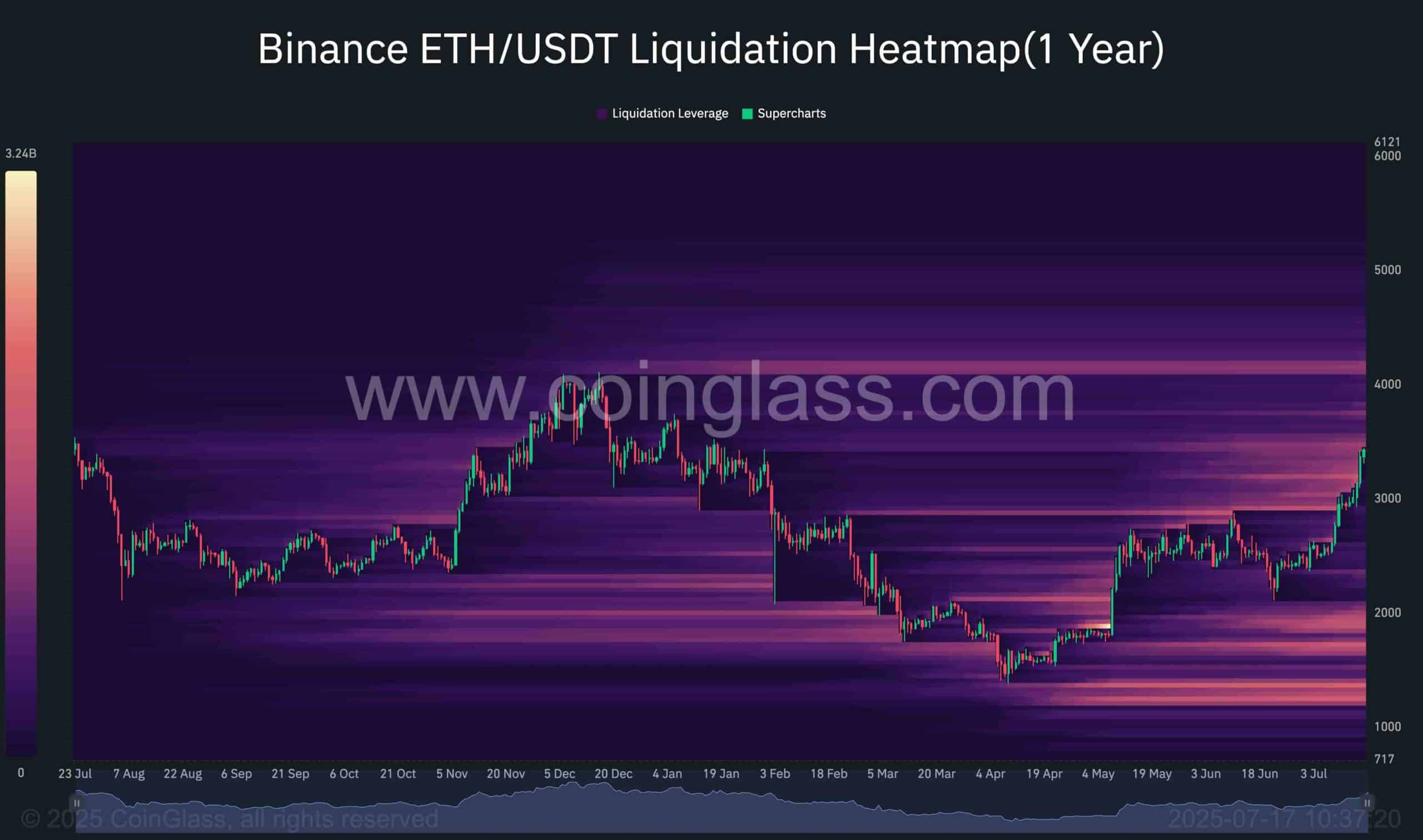 À l’heure actuelle, le chemin vers la région de 4 000 $ semble relativement clair de pools de liquidité importants. Cependant, juste au-delà de la marque de 4 000 $ se trouve un groupe de liquidation substantiel, indiquant une forte probabilité que le prix de Eth puisse être tiré vers cette zone critique.