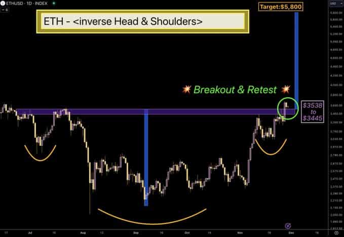 Le moment décisif est survenu avec le croisement haussier d’Ethereum en octobre 2024, qui reflète le signal de Bitcoin d’octobre 2016 qui a conduit à une poussée parabolique.