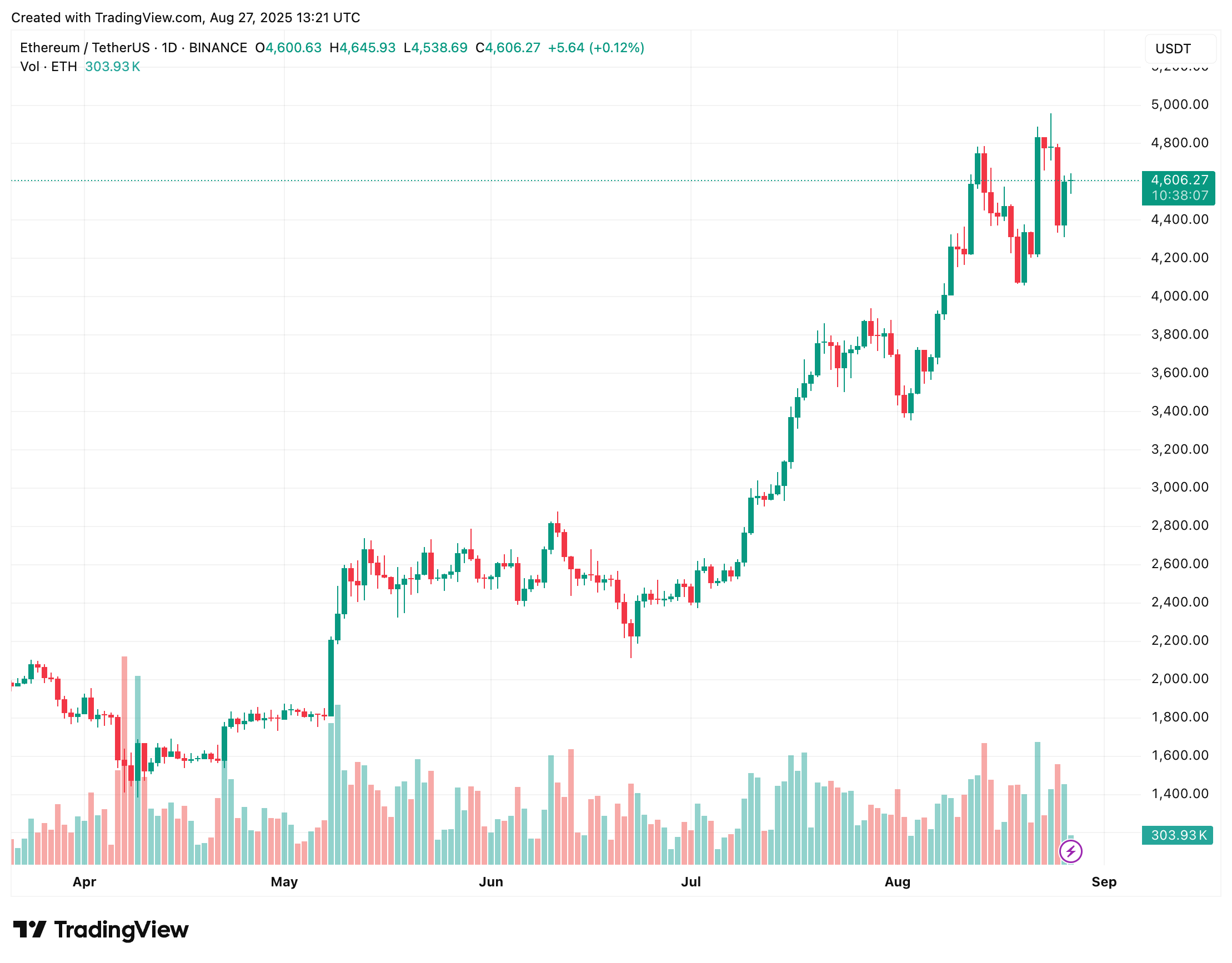 De même, le prix récent recul Dans ETH, après avoir créé un nouvel ATH, plus de 4 900 $ montrent comment les cycles de liquidation récurrents façonnent l’action des prix d’ETH chaque semaine. Au moment de la presse, ETH se négocie à 4 606 $, en hausse de 2,5% au cours des dernières 24 heures.