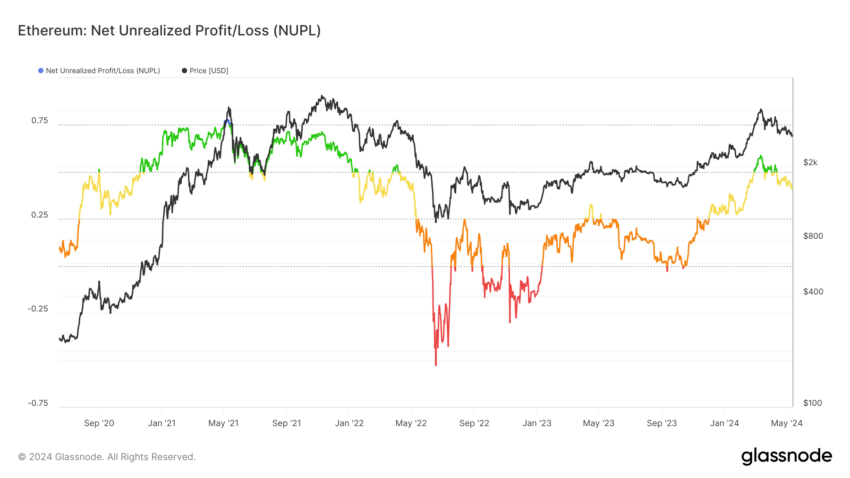 Deuxièmement, le bénéfice/perte net non réalisé est tombé en dessous de 0,5 début avril et se situe actuellement au-dessus de 0,4. Le NUPL est utilisé pour analyser les profits ou les pertes globaux dont seraient témoins les investisseurs s'ils vendaient aux prix actuels.
