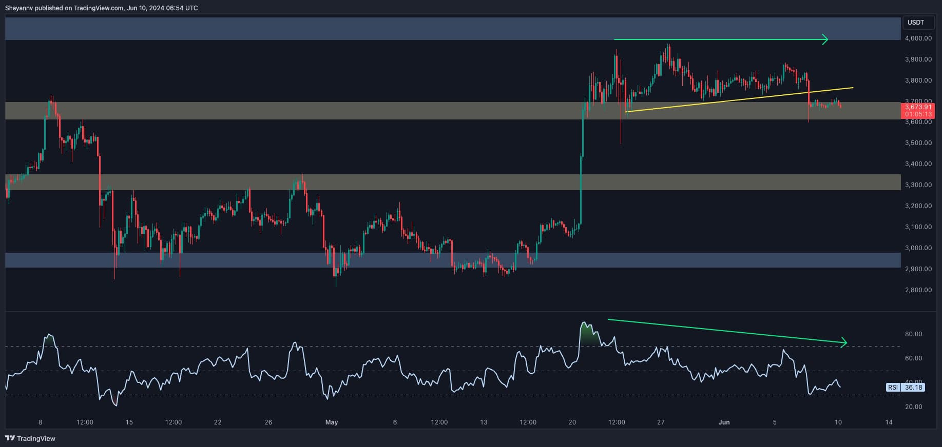 Après une brève consolidation proche du niveau de résistance critique de 4 000 $, Ethereum a rencontré une pression de vente accrue, entraînant une baisse. Cependant, une zone de support importante se profile à l’horizon, ce qui pourrait freiner la poursuite du mouvement à la baisse.