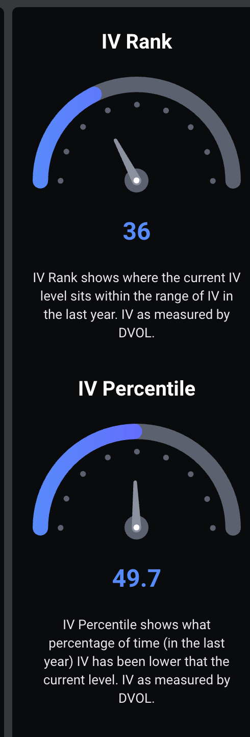 C’est important pour les commerçants. Un DVOL en hausse indique que les marchés d’options s’attendent à des fluctuations de prix plus importantes, même si les prix au comptant semblent se stabiliser. Le IV Rank et le IV Percentile aident les traders à déterminer si les options sont bon marché ou chères par rapport à l’histoire récente, ce qui peut influencer les décisions en matière de couverture, d’effet de levier et d’exposition au risque.