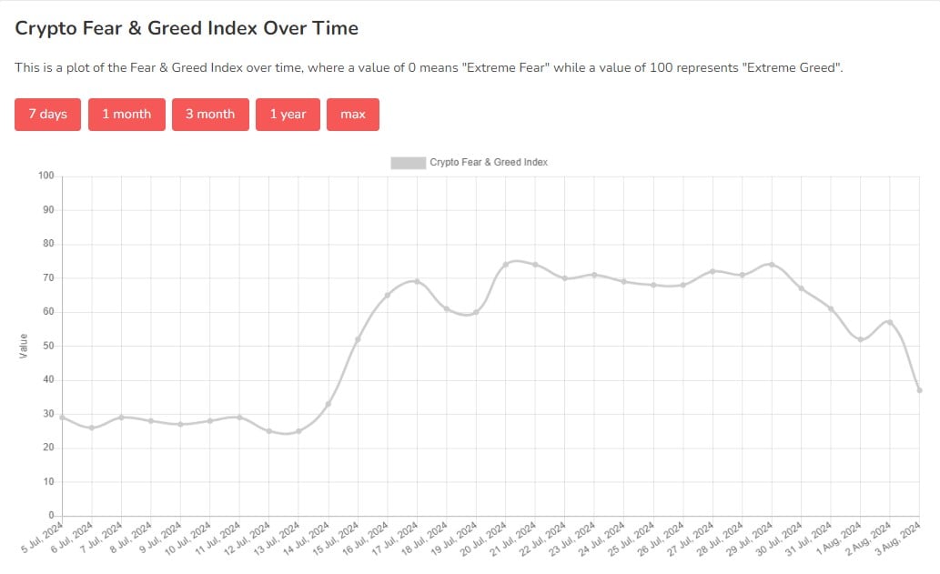 Alors que les pertes s’accumulaient, le sentiment des investisseurs est devenu baissier. Selon les données d’Alternative.me, l’indice Crypto Fear and Greed est tombé à 37, passant de « cupidité » à « peur » pour la première fois en trois semaines.