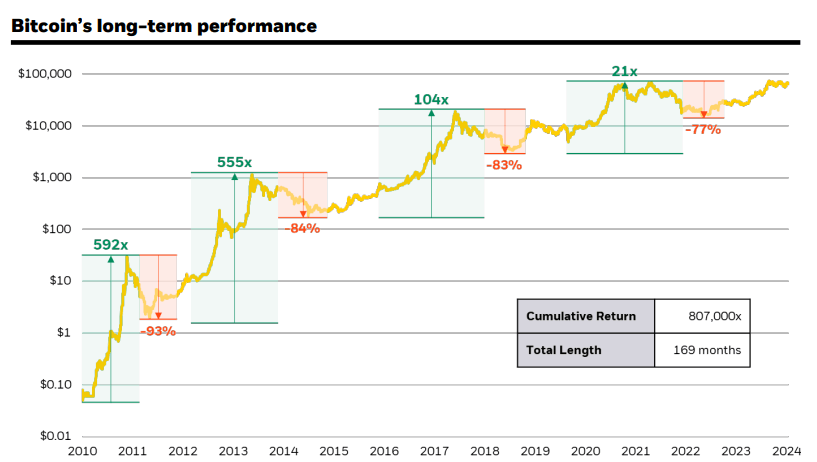 D’autre part, le gestionnaire d’actifs a observé que Bitcoin avait surperformé toutes les principales classes d’actifs au cours de 7 des 10 dernières années, ce qui lui a permis d’obtenir un rendement extraordinaire supérieur à 100 % annualisé au cours de la dernière décennie », et a souligné sa capacité à se remettre des périodes baissières :